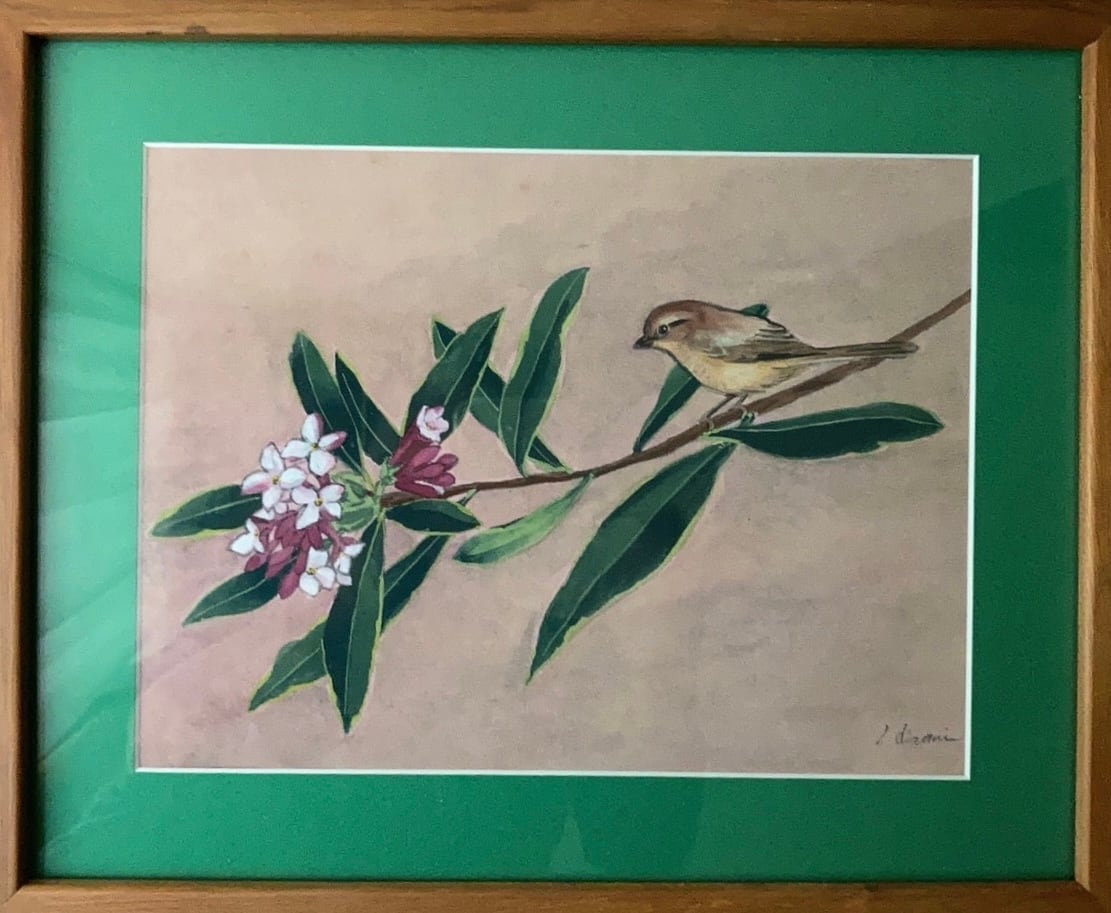 絵画 水彩画 百舌鳥に沈丁花 | アトリエひろ